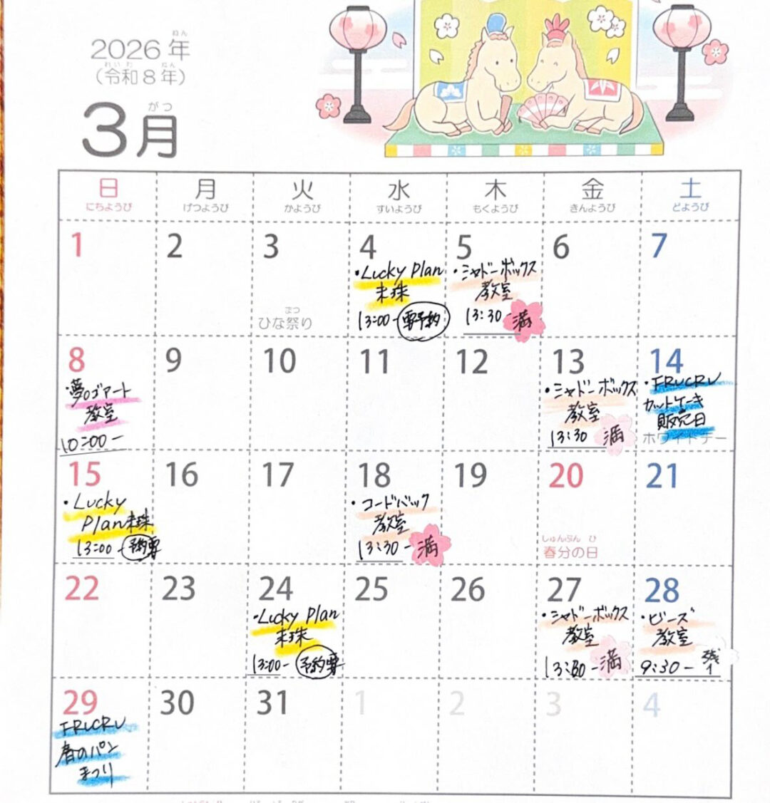 3月もかなり過ぎてしまいましたがグリシーヌ3月の予定をお知らせします。